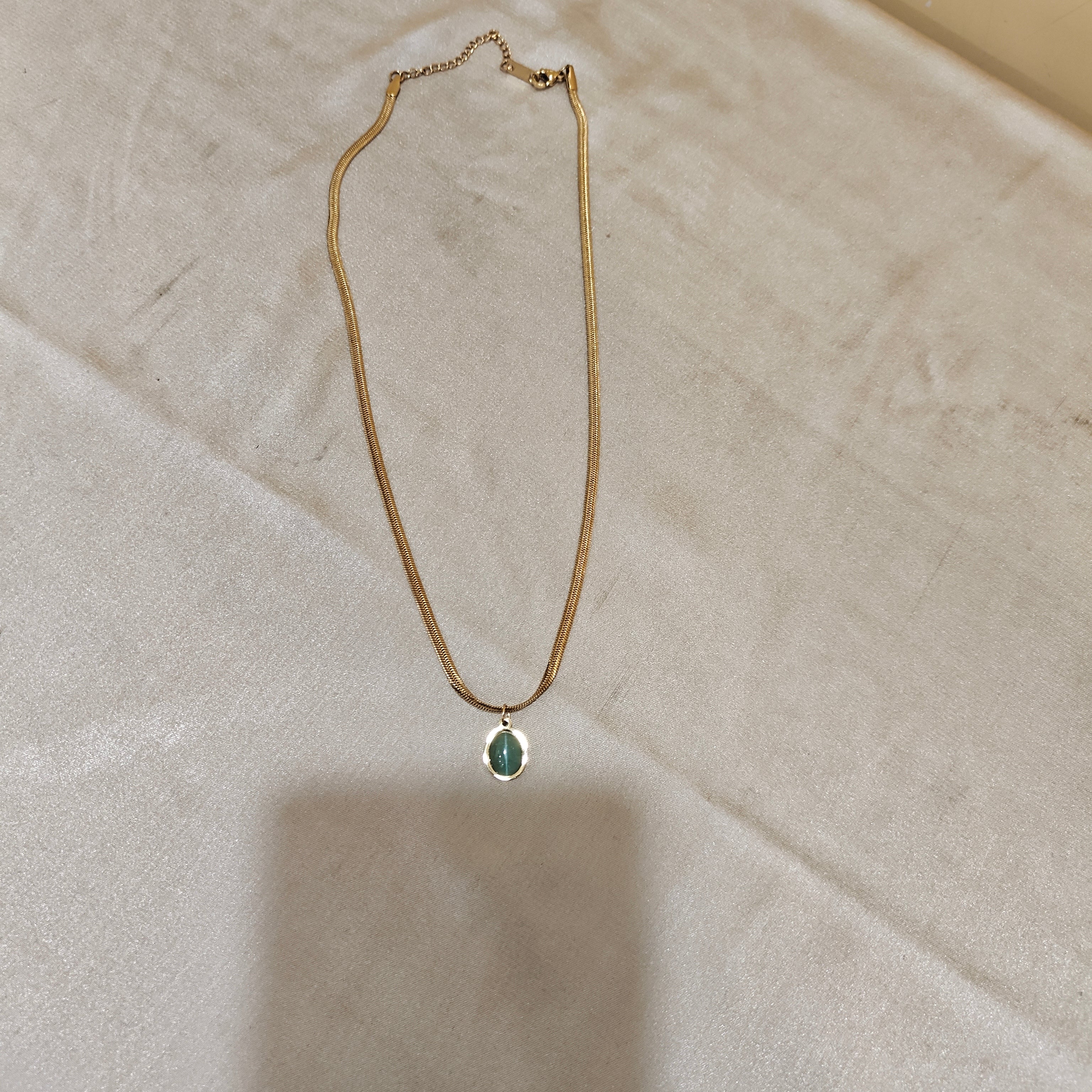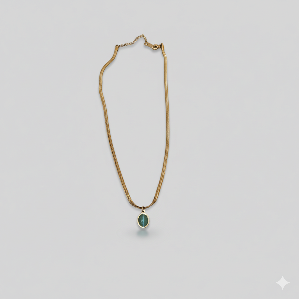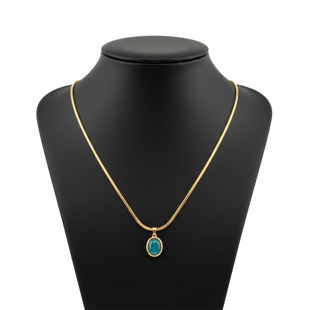 • Elegant Oval Teal Pendant: Featuring a captivating oval-cut teal gemstone, this necklace adds a sophisticated touch of color to any ensemble.
