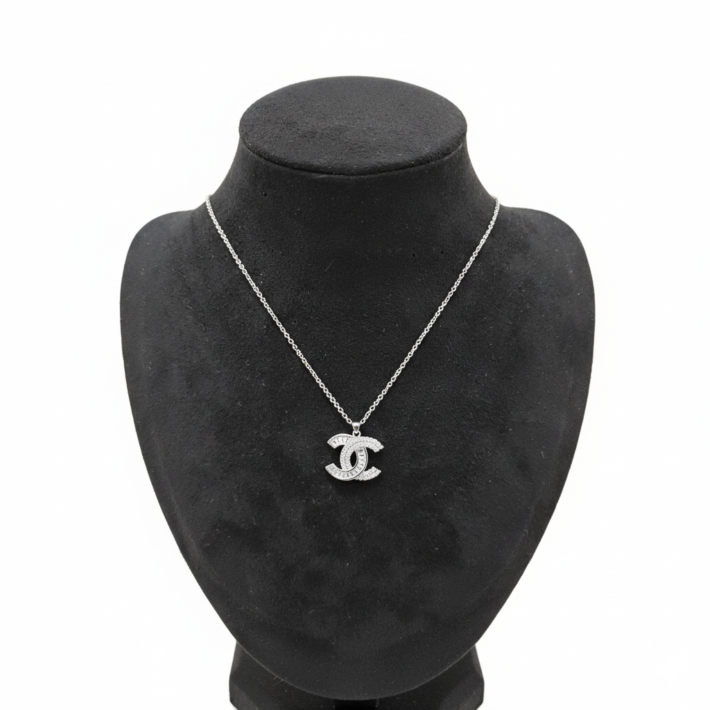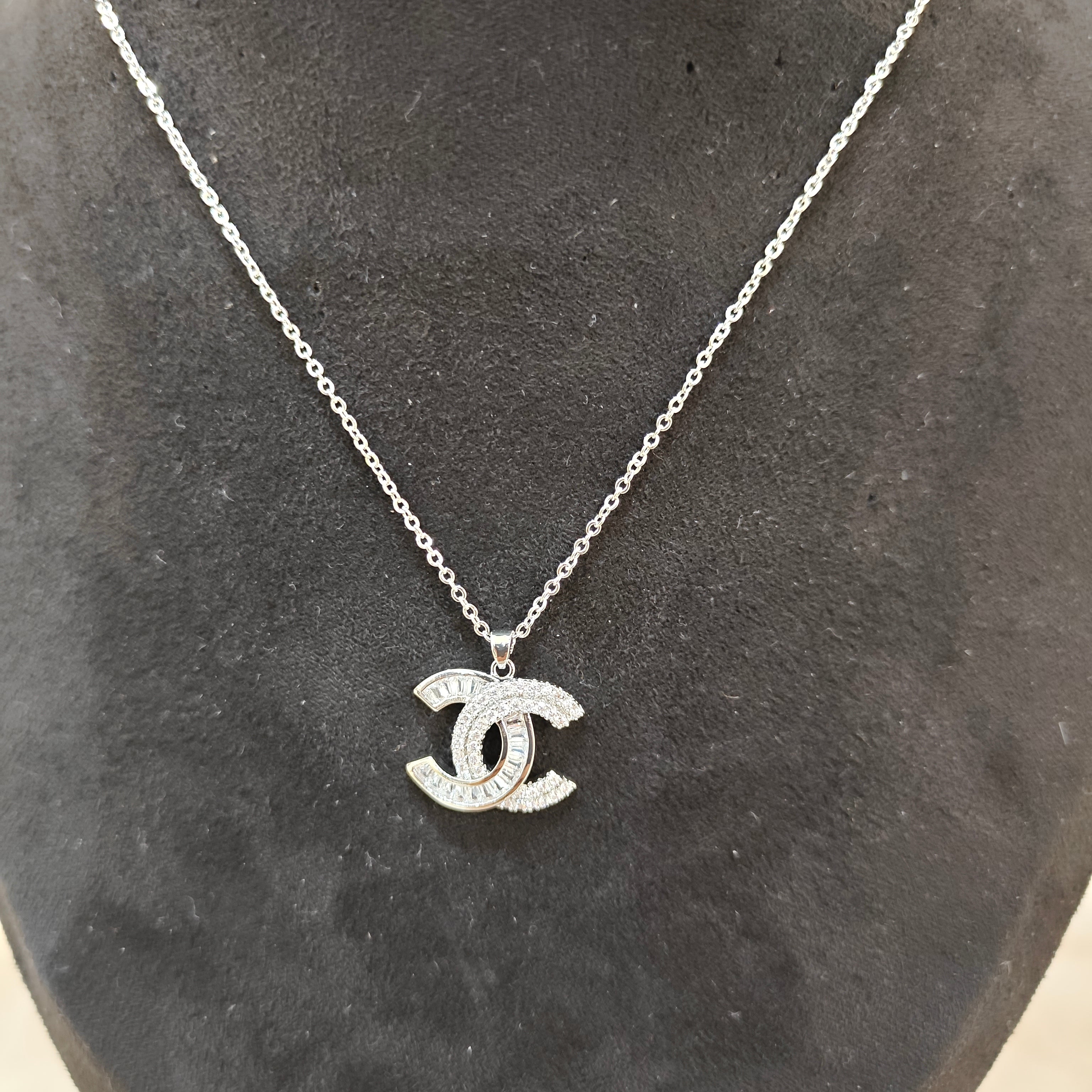 Sparkling Elegance: This exquisite pendant features a captivating interlocking design, meticulously adorned with brilliant baguette and round-cut crystals that catch the light from every angle. The high-quality silver-tone chain perfectly complements the dazzling pendant, offering a sophisticated and polished look.