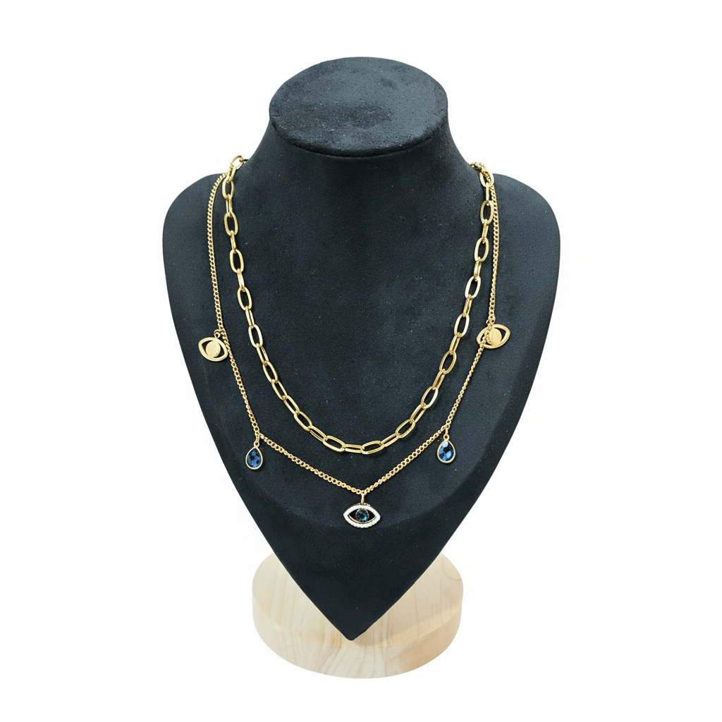 Layered Evil Eye & Teardrop Charm Necklace