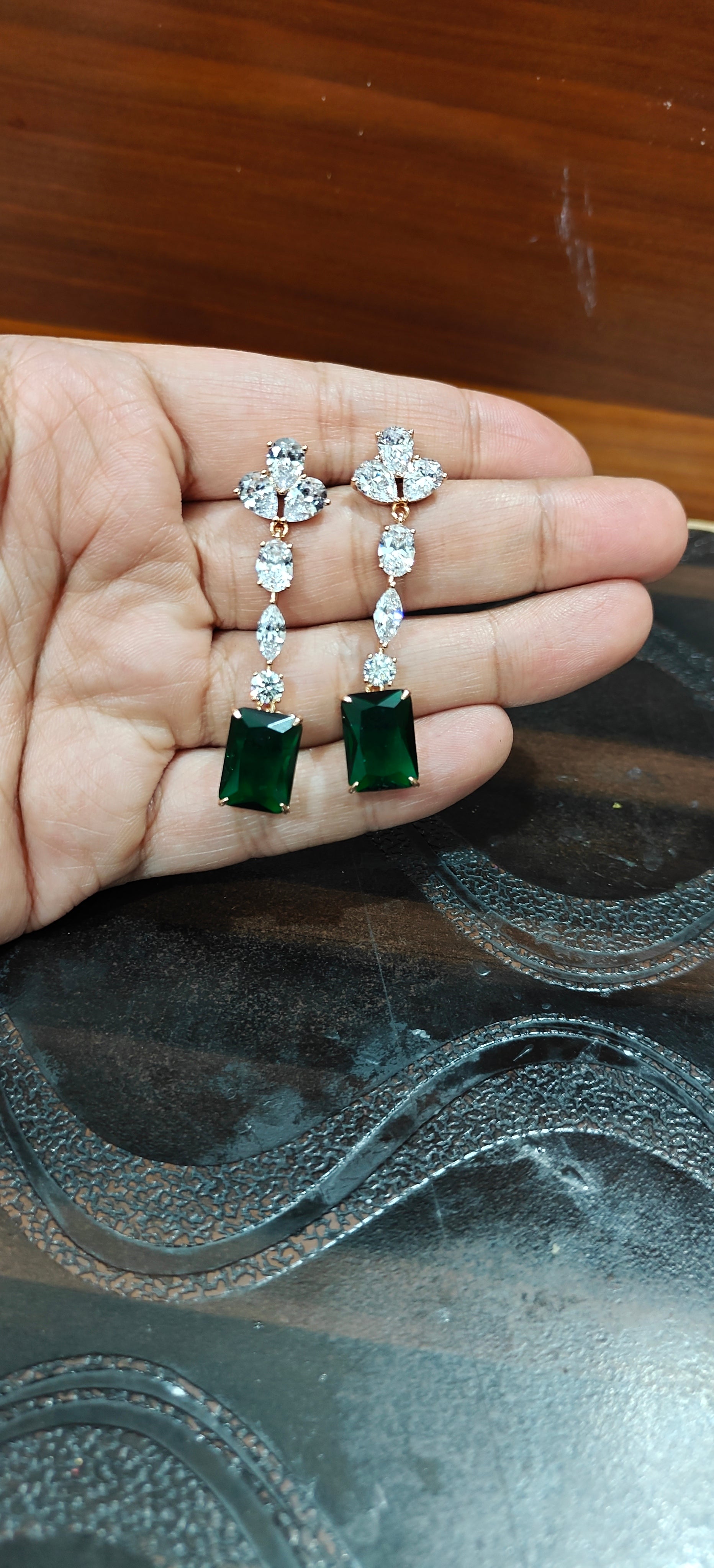 Vibrant Green Allure: The deep, rich emerald green hue of the main stone offers a striking contrast, making these earrings a standout piece that exudes sophistication and charm.