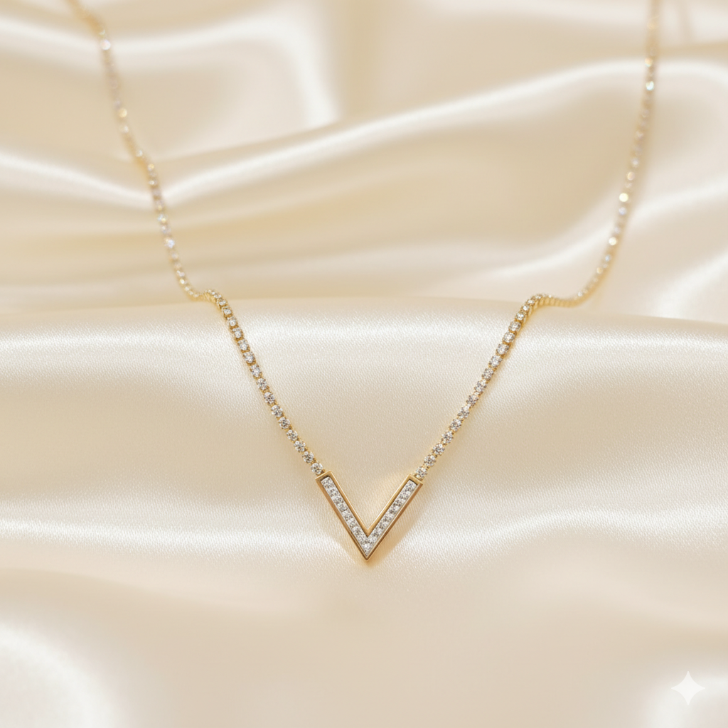 Premium Craftsmanship: Crafted with high-quality materials, the delicate chain and robust 'V' pendant are designed for both enduring beauty and comfortable wear. The secure clasp ensures your treasured piece stays safely in place.